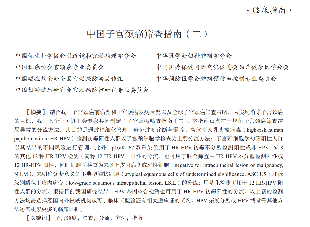 临床指南|中国子宫颈癌筛查指南(二)